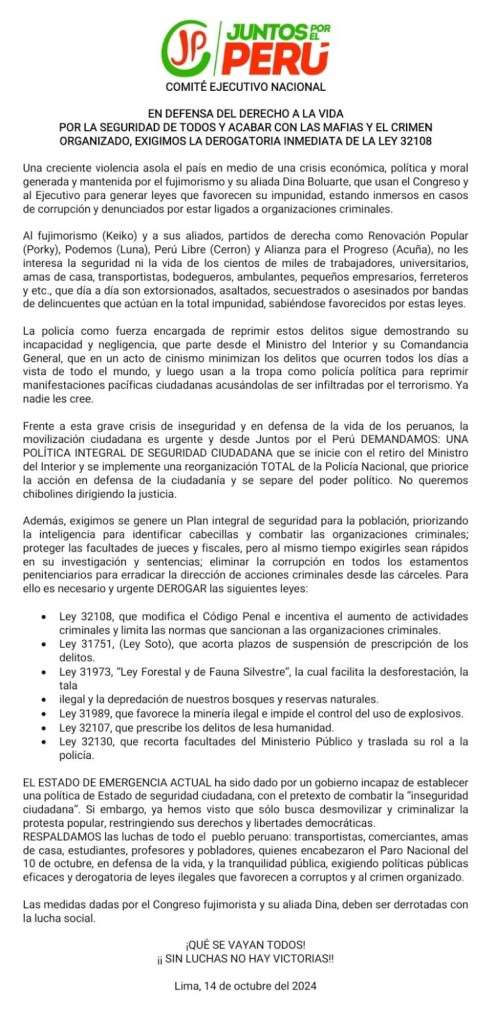 En defensa del derecho a la vida, la seguridad de todos y acabar con las mafias y el crimen organizado Comparte esto: Compartir en X (Se abre en una ventana nueva) X Compartir en Facebook (Se abre en una ventana nueva) Facebook Me gusta Cargando... Relacionado