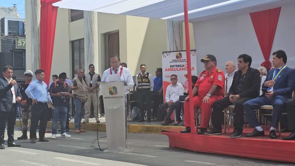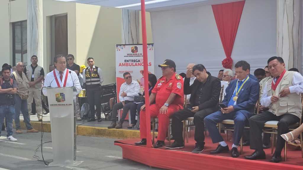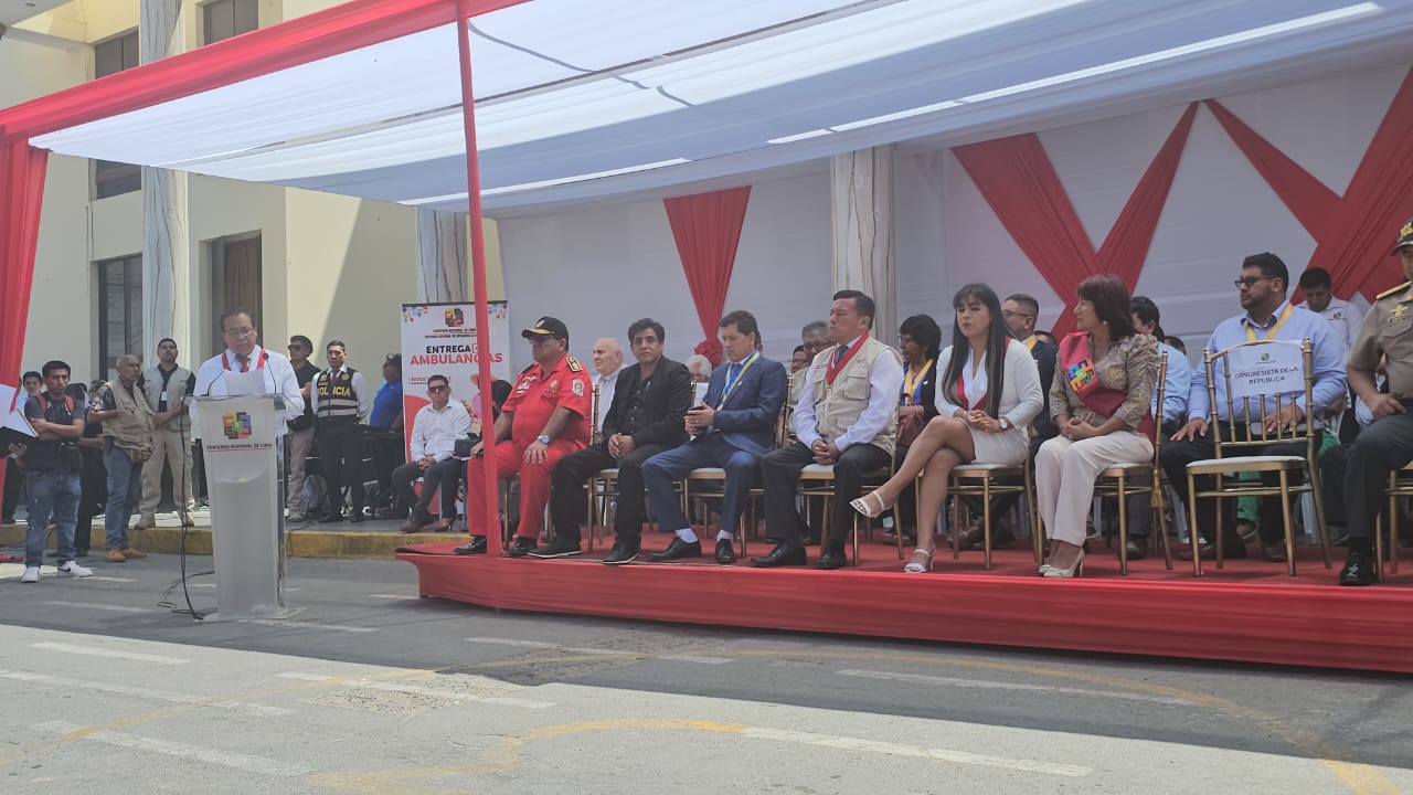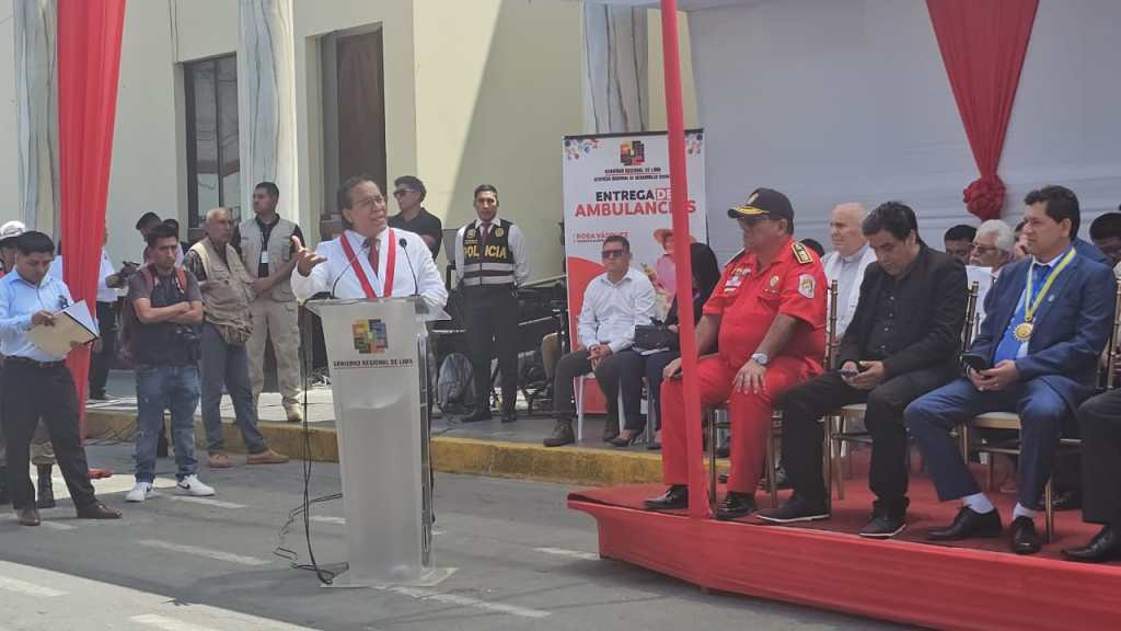 Congresista Roberto Sánchez: «Desde Huacho en la entrega de 25 ambulancias equipadas que el @GORELIMA hace entrega a los hospitales de la región. Lo bueno se reconoce y felicita.»