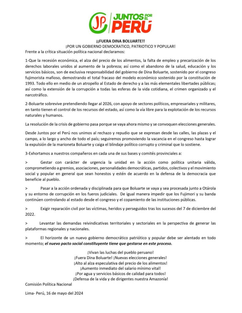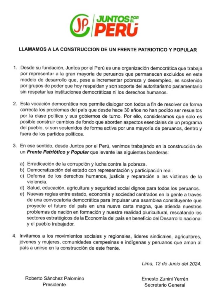 «Trabajamos en la construcción de un «frente patriótico y popular» con diversas fuerzas políticas»